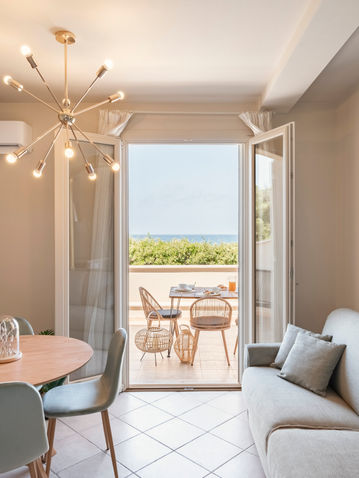 The result is a coastal retreat where natural materials take center stage, and each apartment offers a special connection to the stunning surroundings.